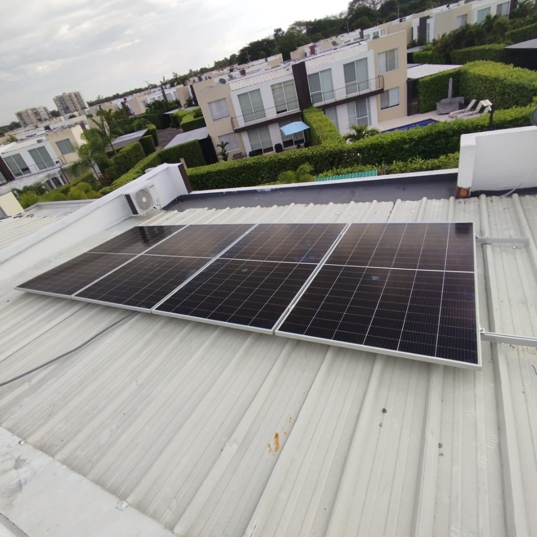 Proyecto solar residencial con 4 paneles: Sistema que cubre 70% de la demanda energética del cliente.