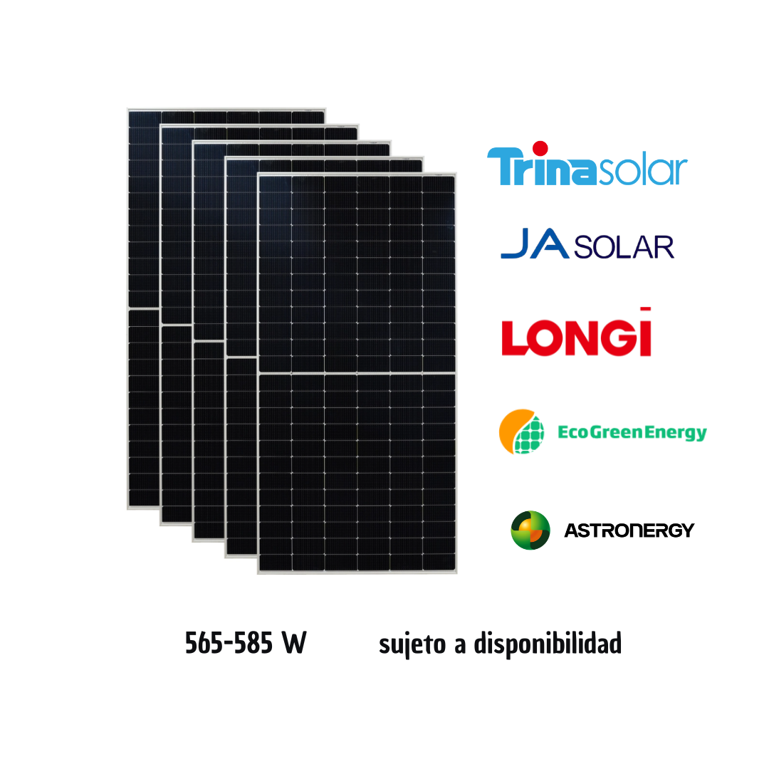 Tenemos disponible un amplio stock de paneles solares. En este artículo, todas las referencias con potencias entre 565W y 585W tendrán el mismo precio.